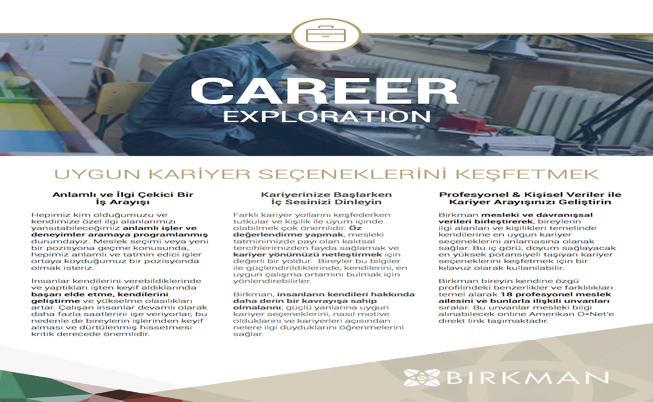 Bir çalışmamda veli öğrencinin hukuk okumak isteğinde çok ısrarcı olduğunu, abisi avukat olduğu için bu yönde bir seçimde ısrarcı olduğunu düşündüğünü ve doğru bir seçim yapıp yapmadığını kontrol etme şansımızın ne kadar olduğunu sordu. Birkman Metodu’na ait kariyer ve kişilik raporları ile en uygun mesleki seçenekleri nedenleri ile öğrenciye aktarabileceğimizi anlattım.